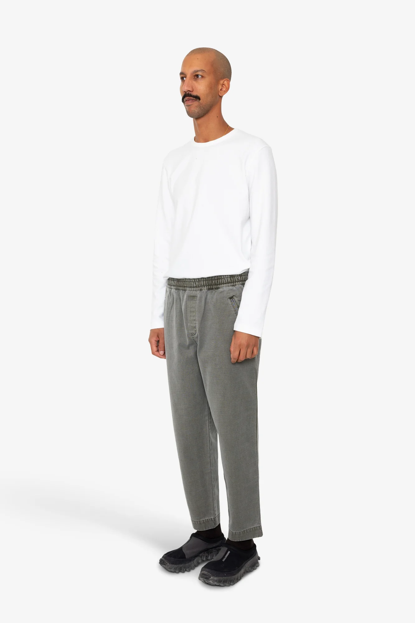 A Drawcord version of our classic Assembly Pant. Relaxed, tapered shape with a cropped leg length and elasticated waistband.